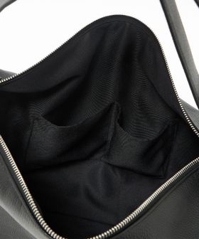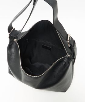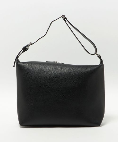 シボ感のある表情が映える、装飾を省いたすっきりとしたデザインのショルダーバッグ。