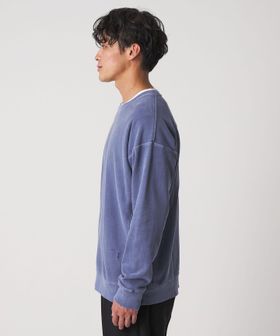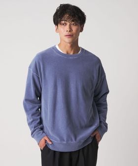適度なダメージ加工と、今年らしい表情のあるフェードカラーが目を引く裏毛スウェット。