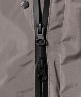 フロントはダブルジップ×スナップボタンを採用して、外気が入りにくいように工夫しています。