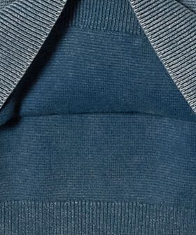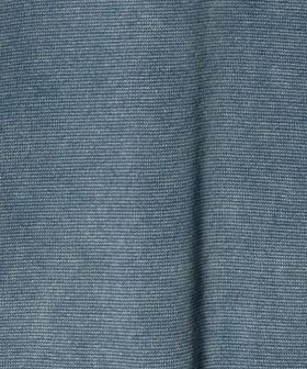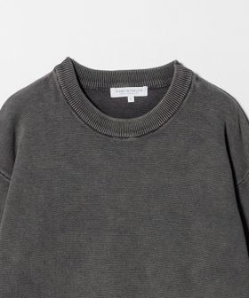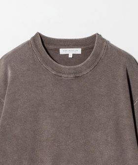 毛羽感が少ない糸を使用しミラノリブ組織に編立て、古着風の加工を施した素材を採用。