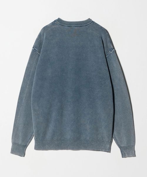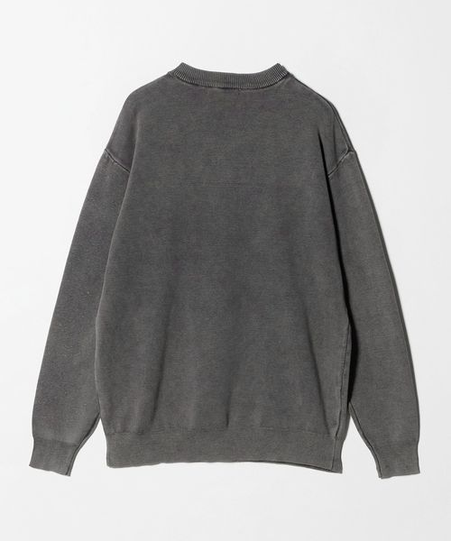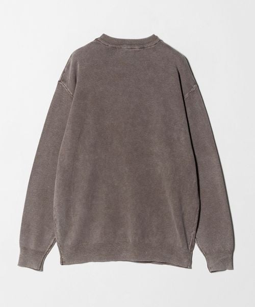 毛羽感が少ない糸を使用しミラノリブ組織に編立て、古着風の加工を施した素材を採用。