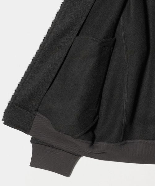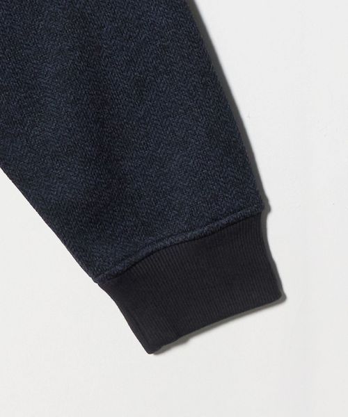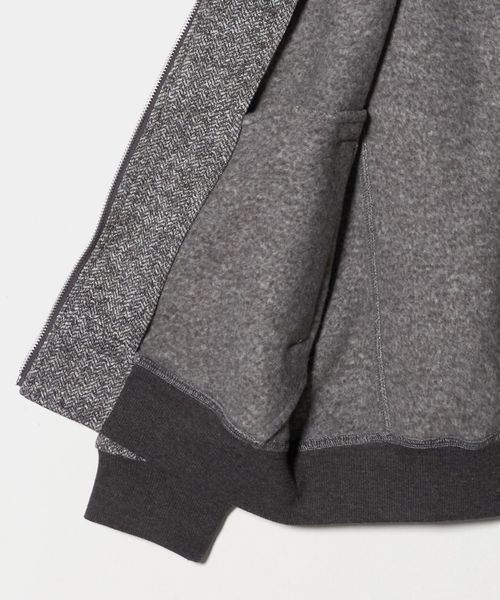ヘリンボーンプリントを施した裏起毛ニットフリース素材を採用。
