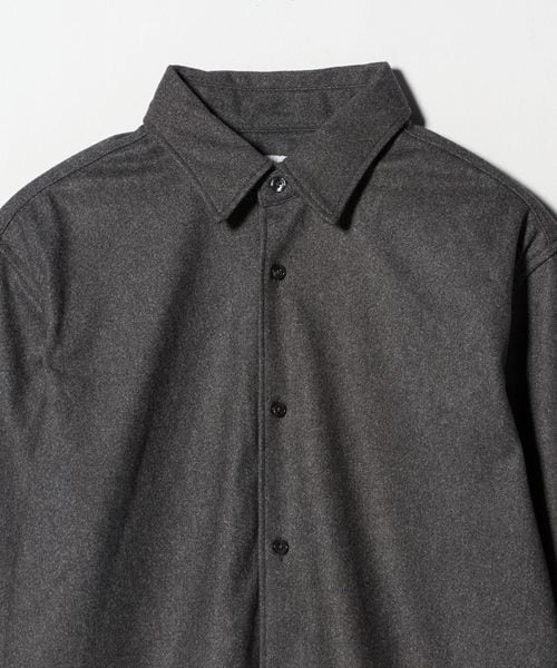 落ち着いたメランジ感でホームスパンの風合いを表現した長袖シャツ。