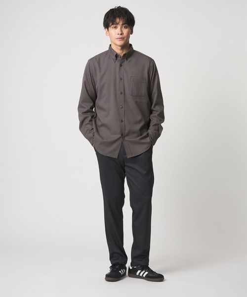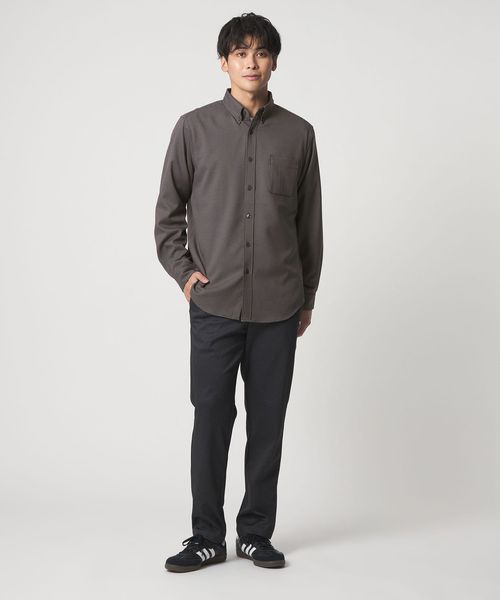 襟元はボタンダウンのディテールを採用し、シルエットは程よいゆとりがあり、リラックス感のある着心地です。
