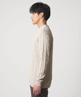 カシミヤの糸をブレンドしたベーシックなケーブル編みのニット。