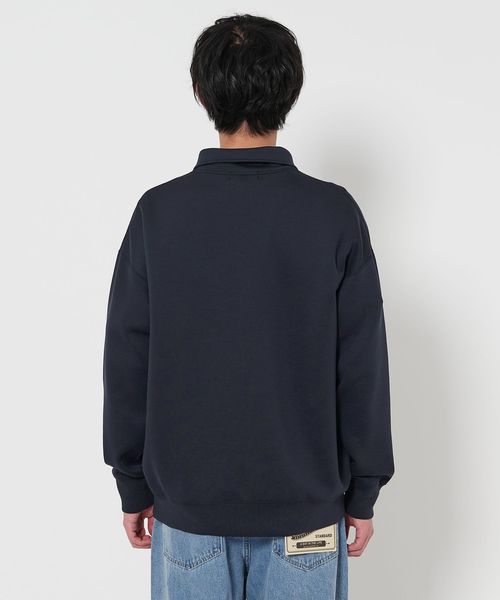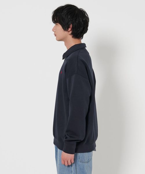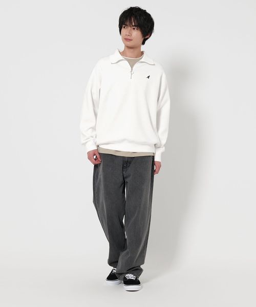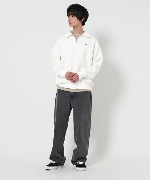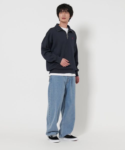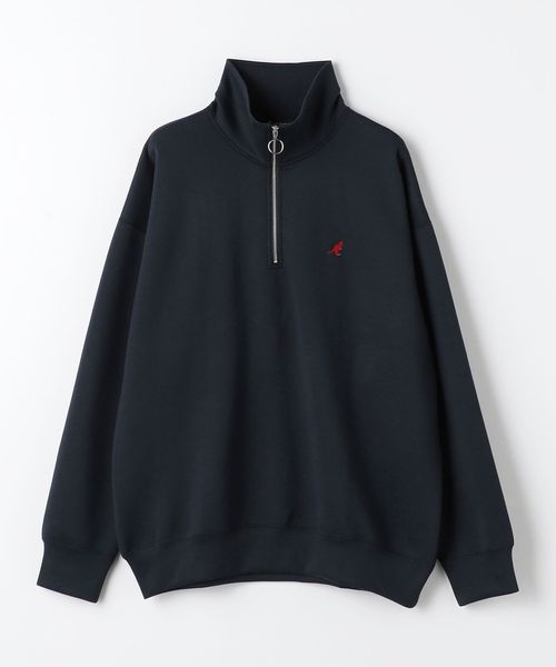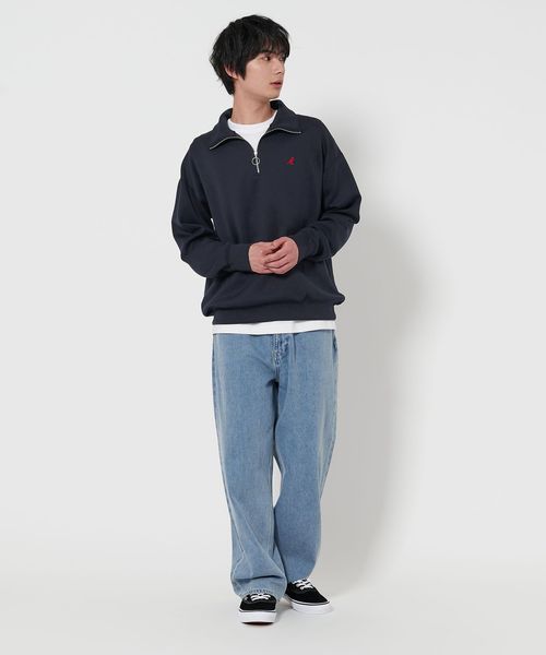 左胸にワンポイント刺繍を施したハーフジッププルオーバー。