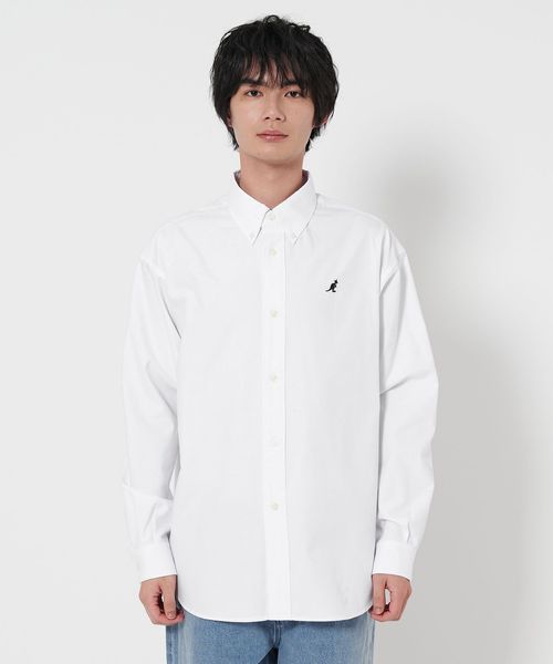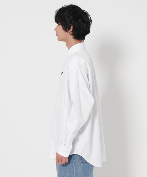 胸元にワンポイントロゴの刺繍を施した長袖シャツ。