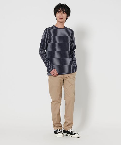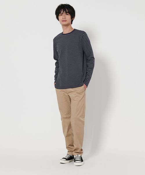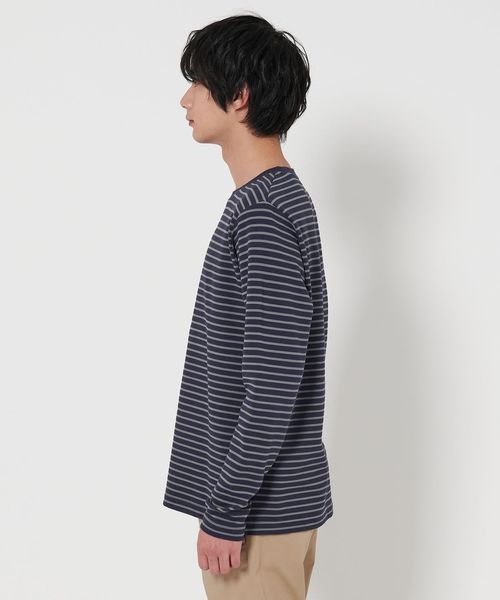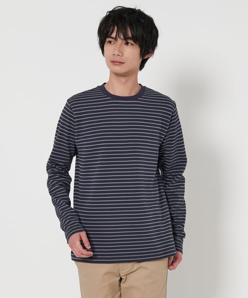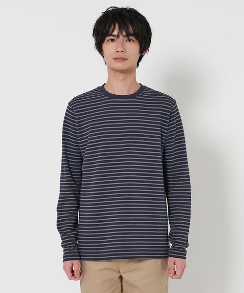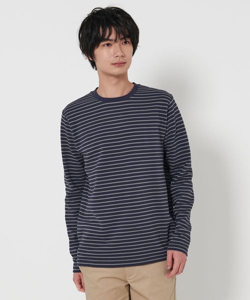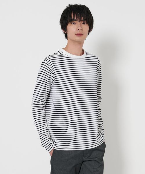 カジュアルに着こなせるボーダー長袖Tシャツ。