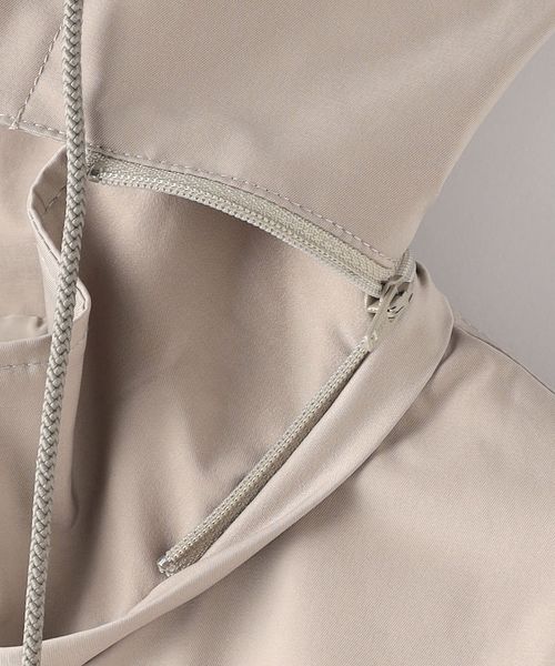 立体的に仕上げたフードはジップで着脱が可能です。