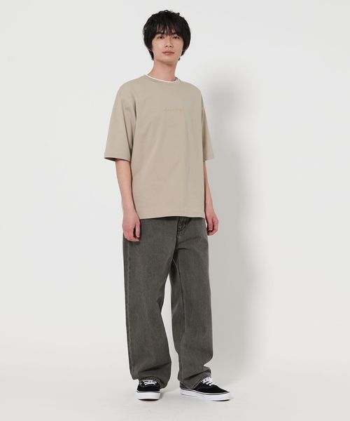 ロゴプリントTシャツを合わせるのもおすすめ。