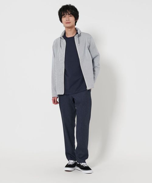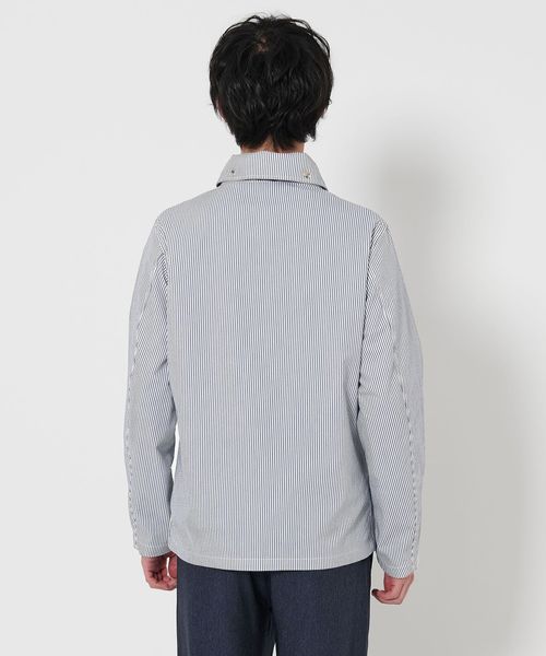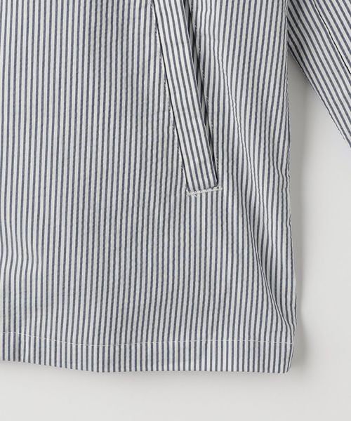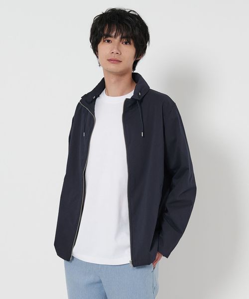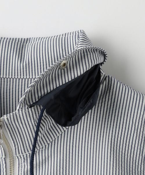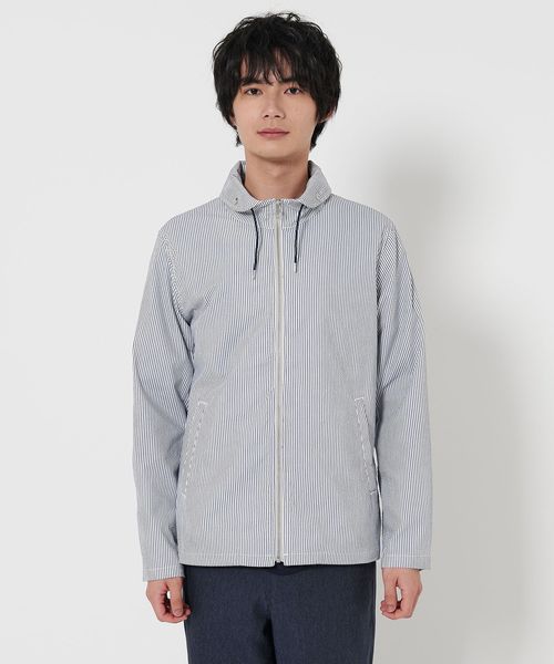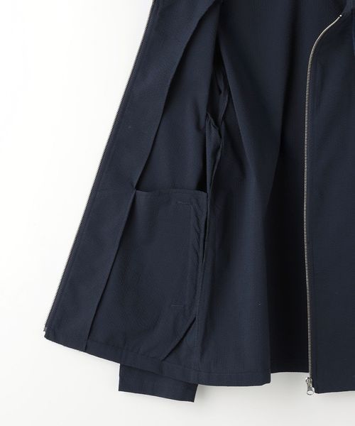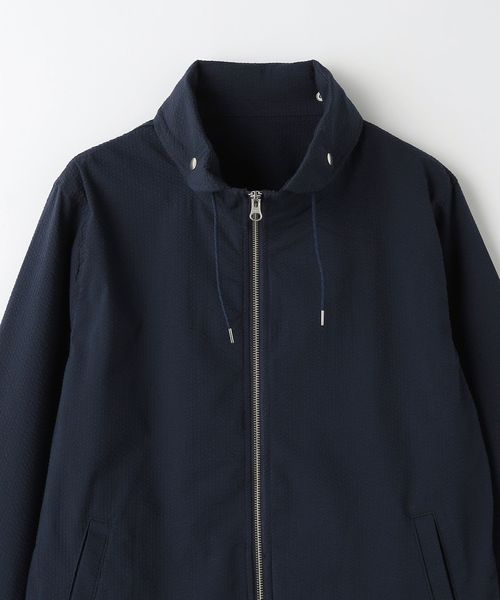 清涼感のあるサッカー組織の生地を使用したショールカラーのブルゾン。