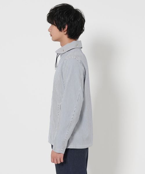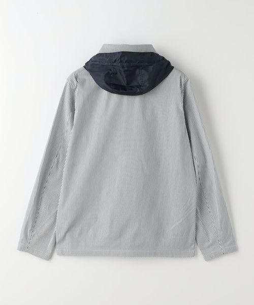 衿元にはフードを内蔵しており、シーンやコーディネートに合わせてアレンジを楽しめます。