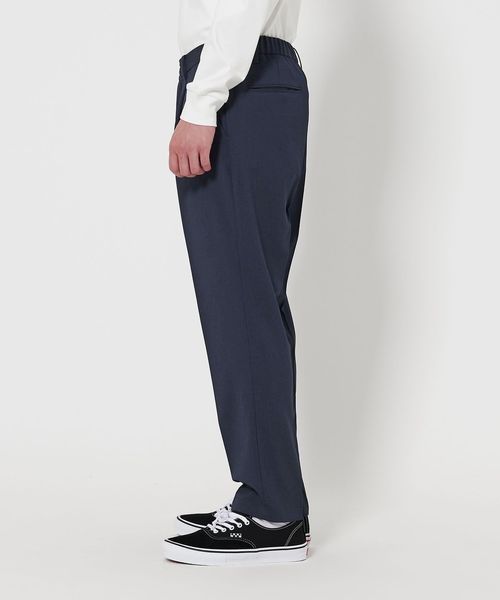 腰回りにゆとりがあり、裾を絞ったリラックス感のあるシルエット。