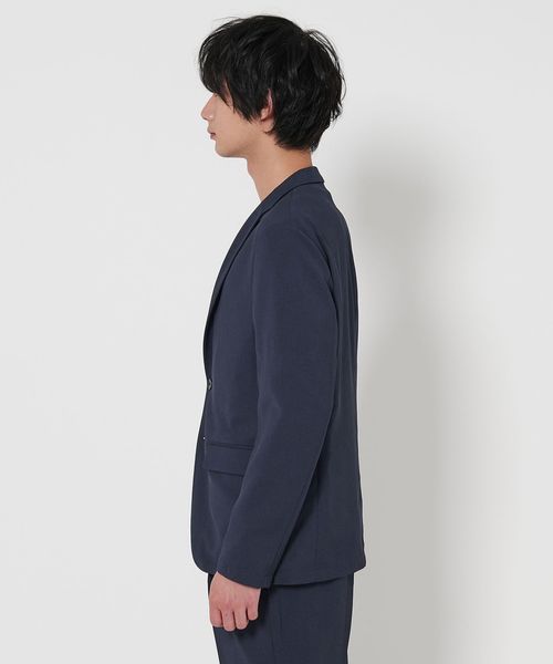 上品見えするウール調ポリエステル素材を使用したカジュアルジャケット。