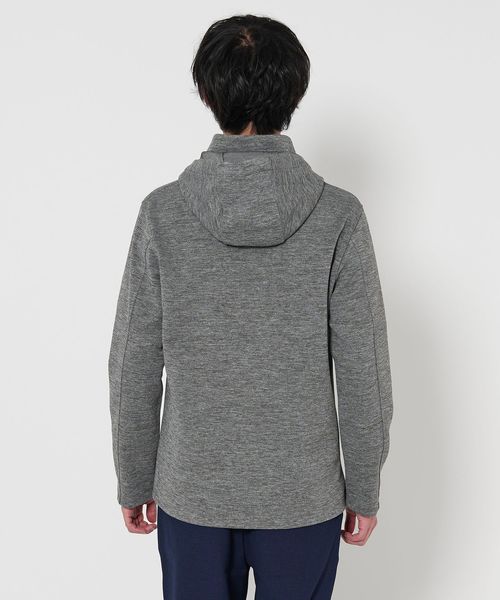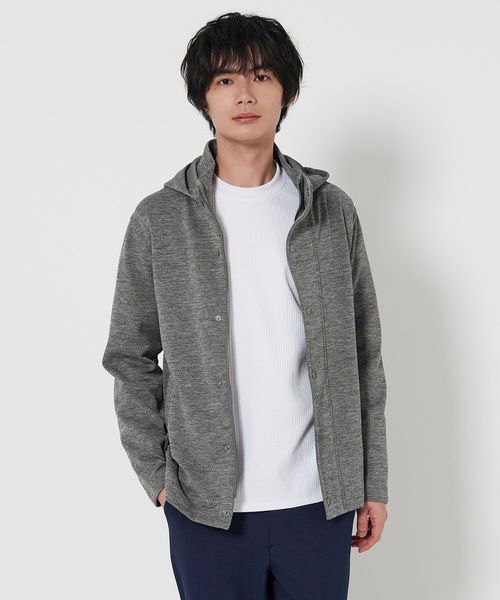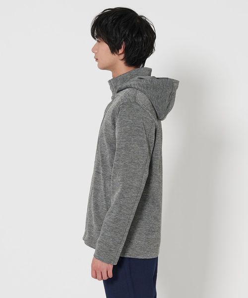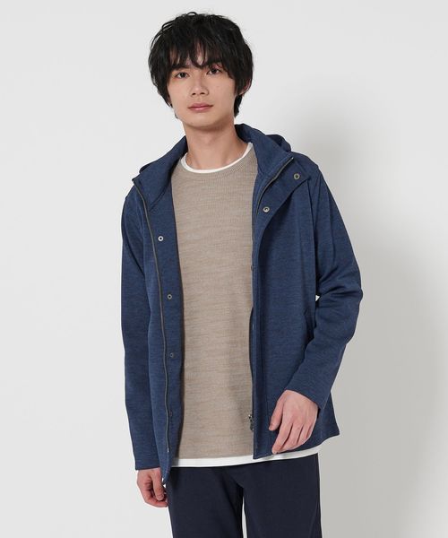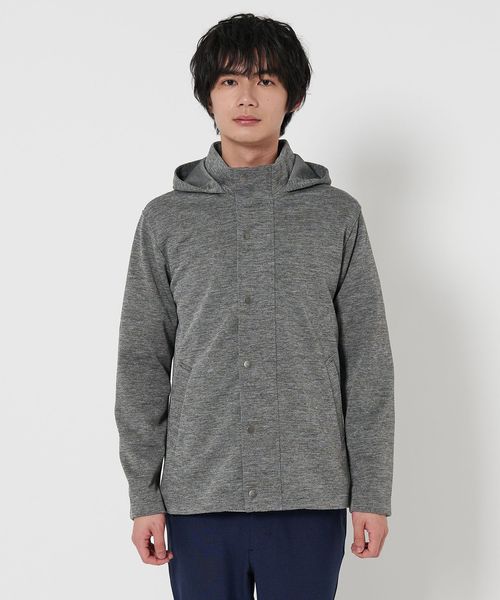 メランジ感がある表情豊かなスタンドカラーのフードブルゾン。