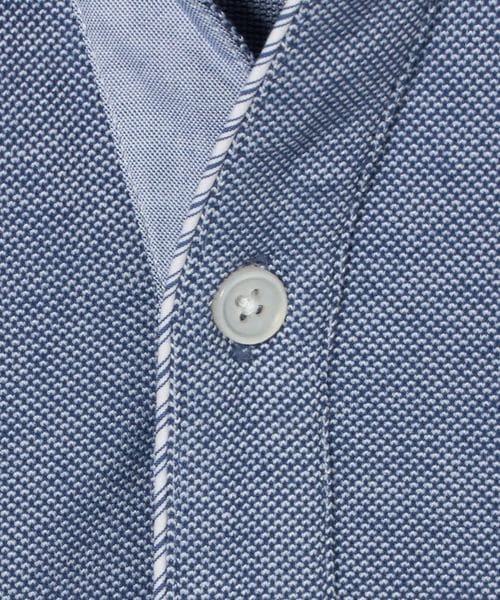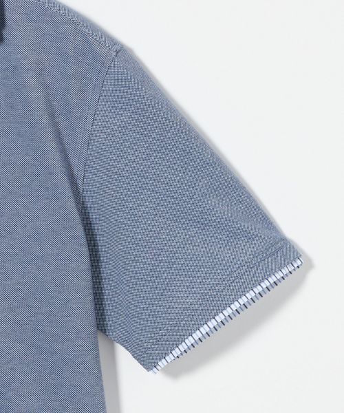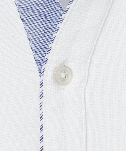 清涼感のある鹿の子生地を使用したスキッパーデザインのポロシャツ。