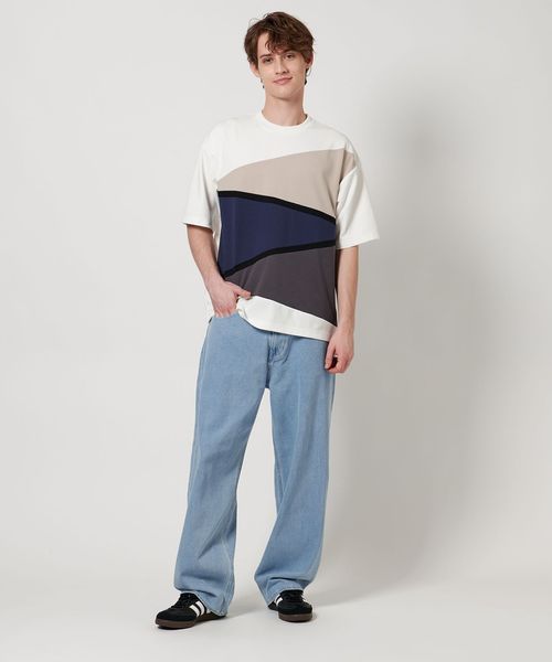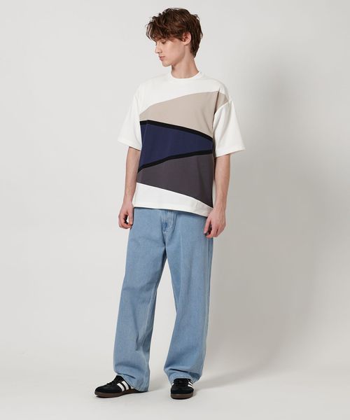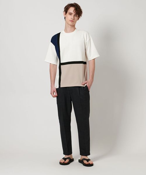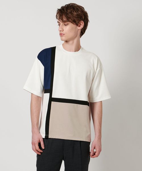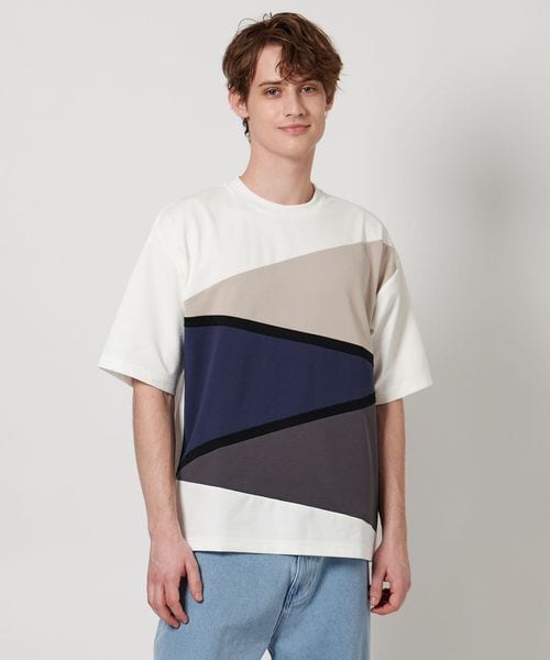 アシンメトリーな切り替えデザインでモダンな雰囲気を出したTシャツ。