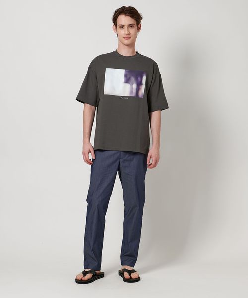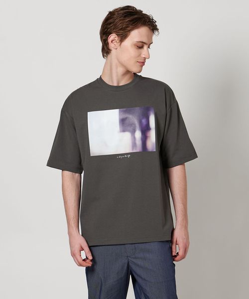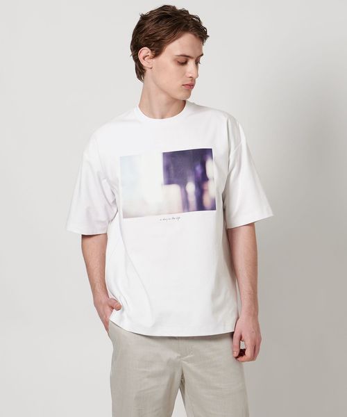ハリのあるポンチ素材に抽象的な風景の写真をあしらったTシャツ。