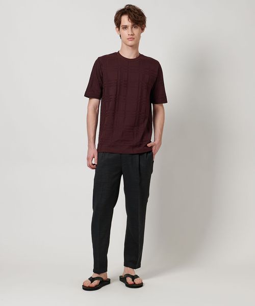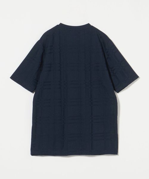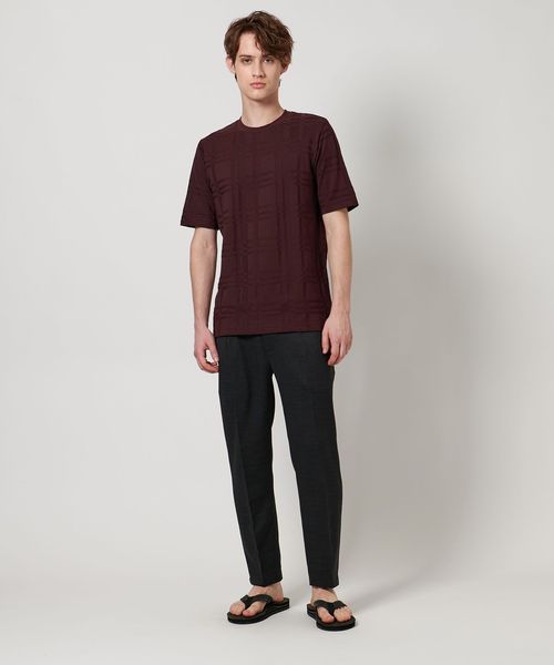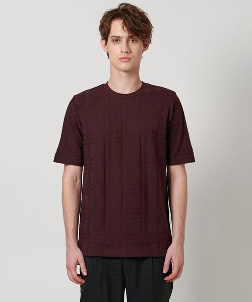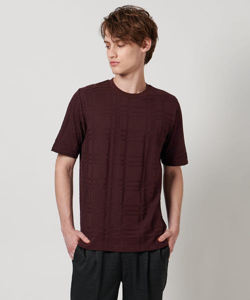 編地の凹凸によってチェック柄をさりげなくデザインしたカットソー。