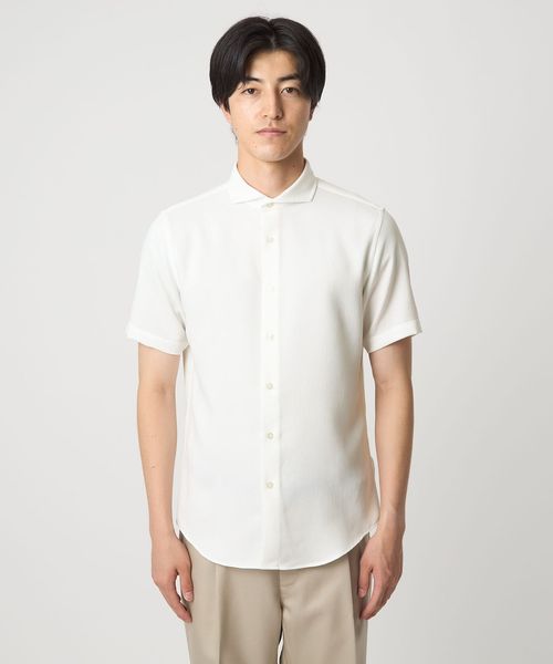 風合いのある、スラブ調のツイル生地を使用した、カッタウェイカラーの半袖シャツ。