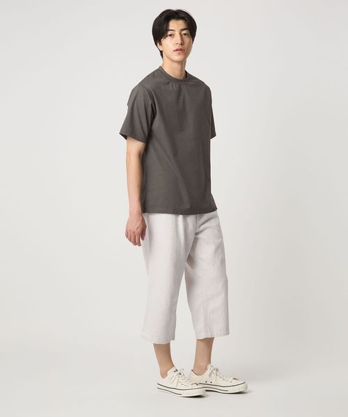 一枚着はもちろん、ジャケットのインナーやスリムテーパードのパンツなどキレイめな組み合わせがおすすめ。