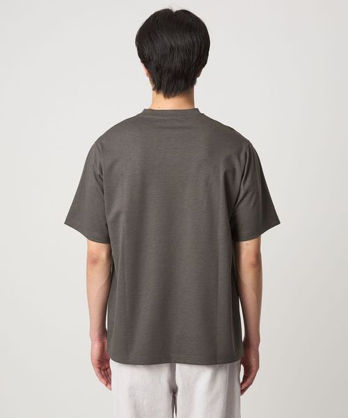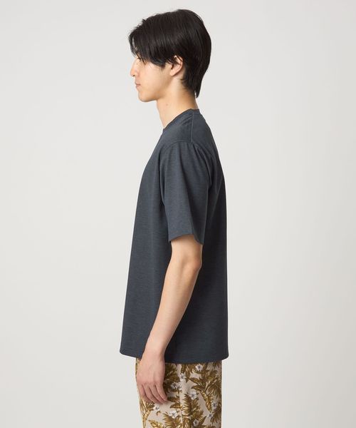 ハリと光沢のあるポンチ素材にツイルプリントを施したTシャツ。