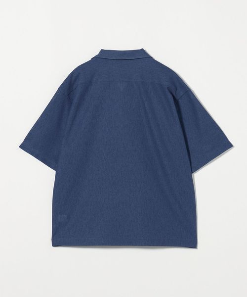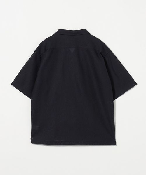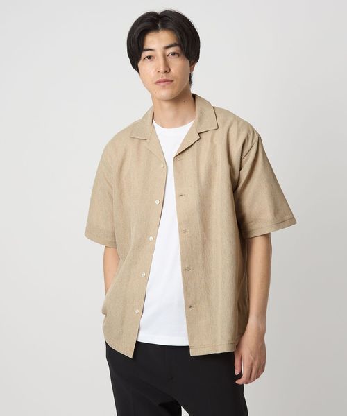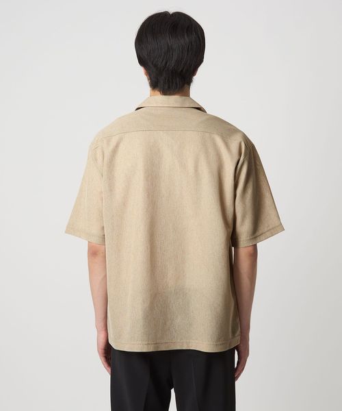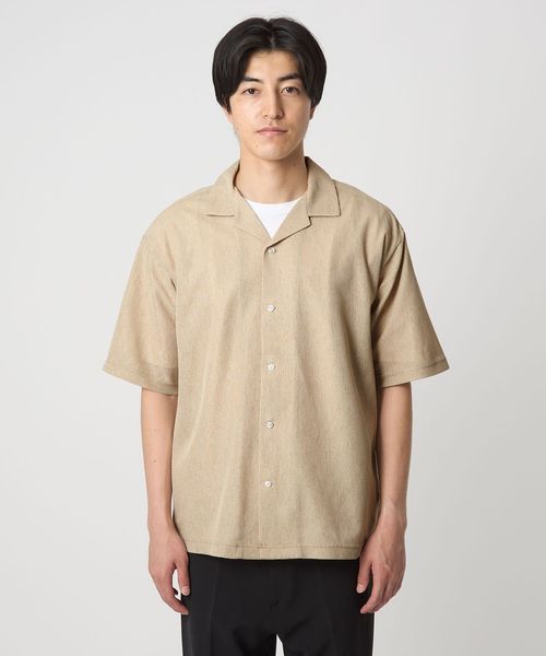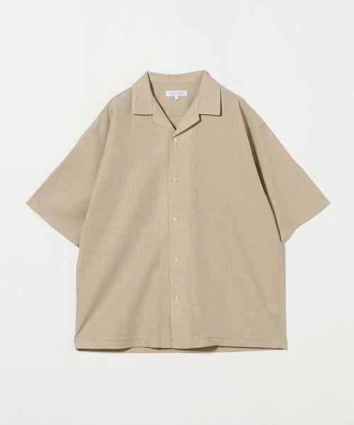 ライトラッセルを使用した、顔回りがすっきりと見えるオープンカラーの半袖シャツ。
