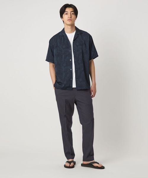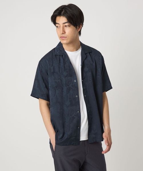 夏にぴったりのボタニカル柄を陰影で表現した、ジャガード素材の開襟シャツ。