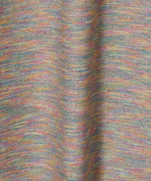 虹色のメランジカラーが、コーディネートを明るく見せます。