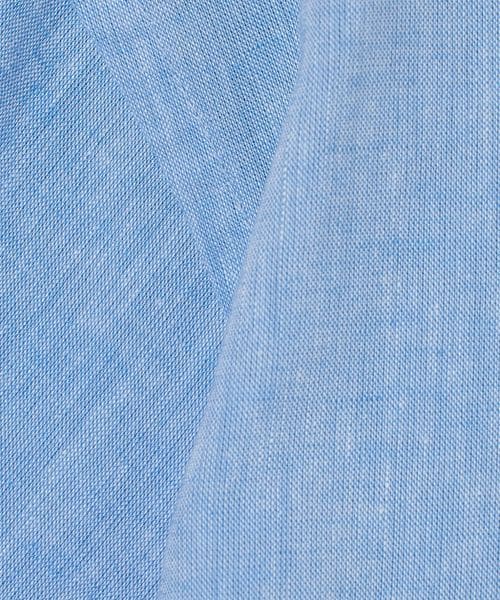 バンドカラー×スキッパーネックで顔回りがすっきりと見えるシャツ。