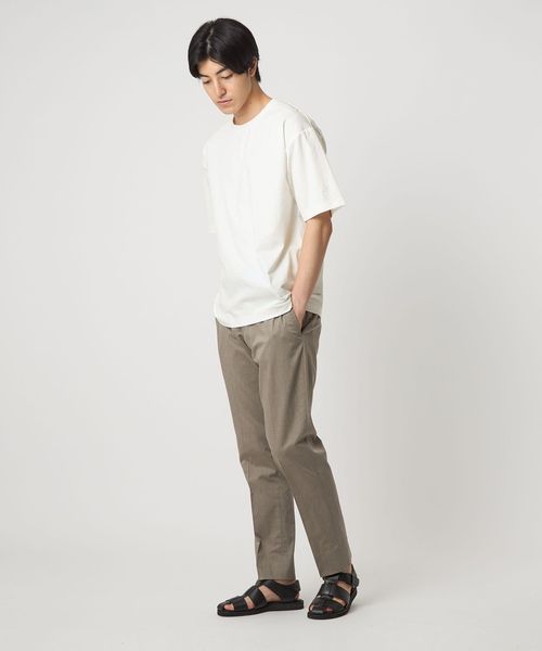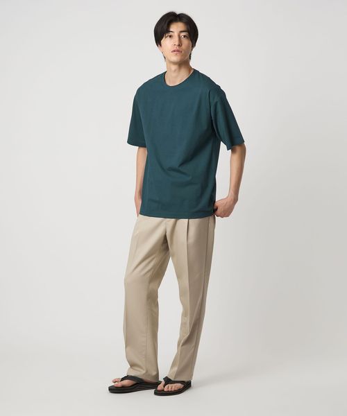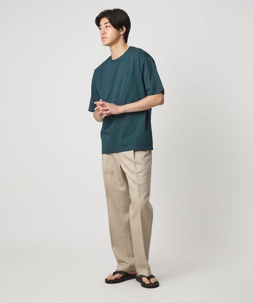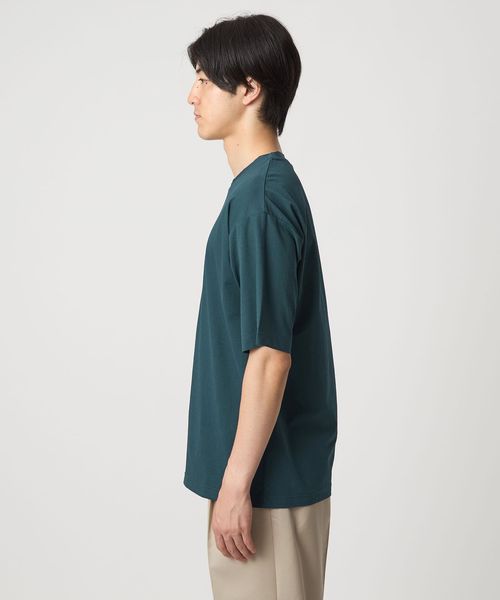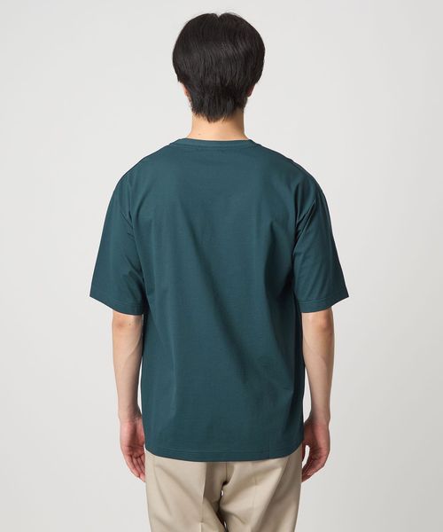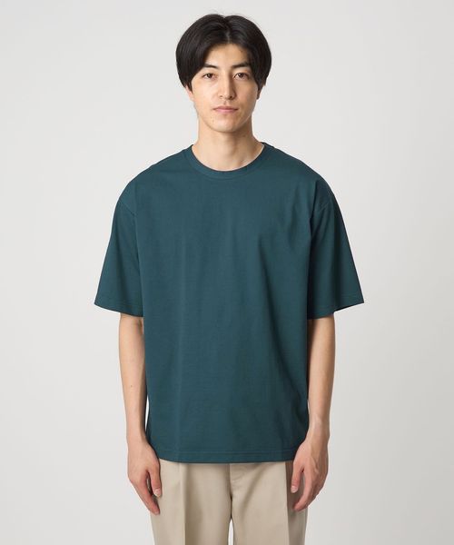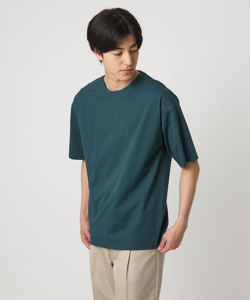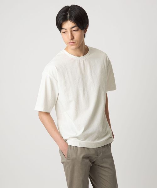 コットンにポリエステルを織り交ぜた、しなやかな素材を用いたクルーネックトップス。
