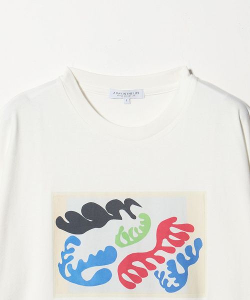 絵画をモチーフにした前面プリントがコーディネートのさりげないアクセントに