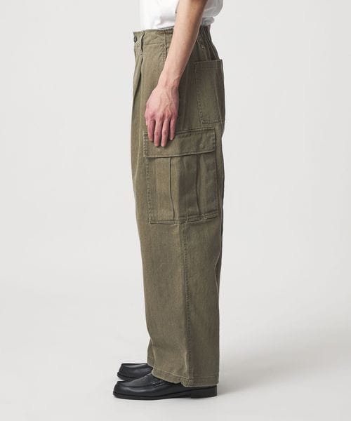 厚みのある生地にフェード加工を施し、各所に表情のある加工感を加えたカーゴパンツ。