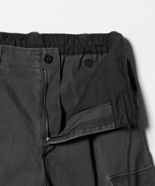厚みのある生地にフェード加工を施し、各所に表情のある加工感を加えたカーゴパンツ。