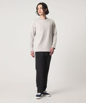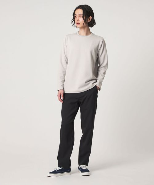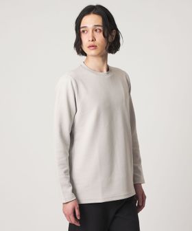 袖と裾はリブを使用していないため、すっきりとした上品な印象に仕上がっており、1枚着でもレイヤードでも活躍するデザインです。