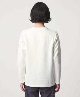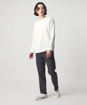 袖と裾はリブを使用していないため、すっきりとした上品な印象に仕上がっており、1枚着でもレイヤードでも活躍するデザインです。