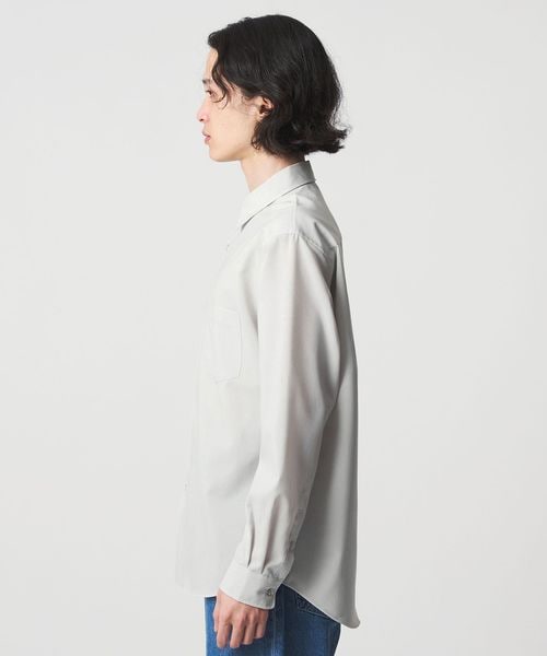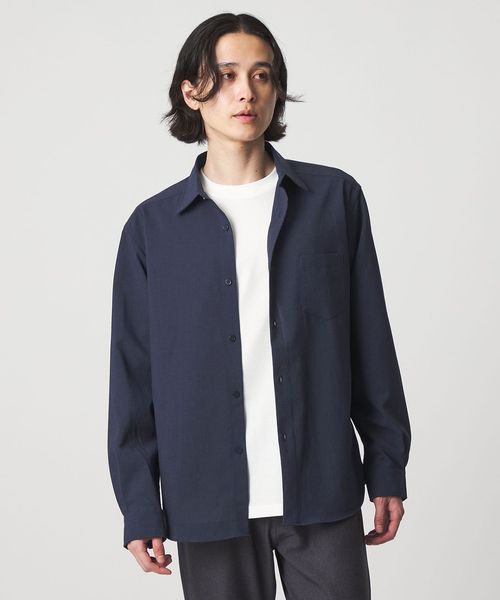 ウール調ポリエステルを使用した、ほどよくゆとりのあるシルエットの長袖シャツ。