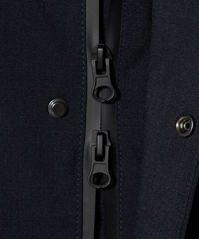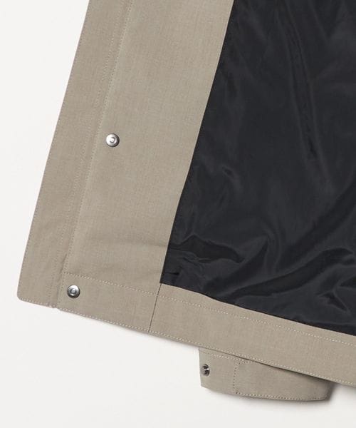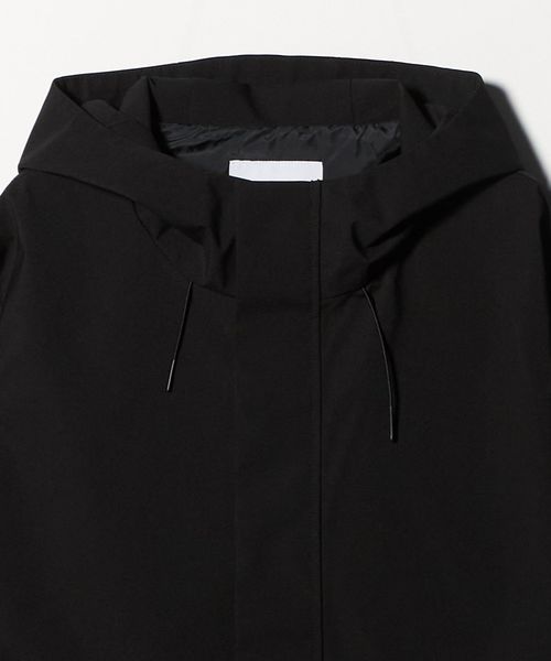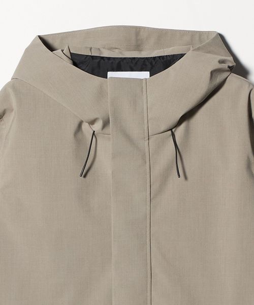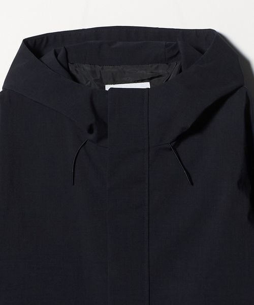 マウンテンパーカーのデザインをベースにしつつ、不要な装飾を削ぎ落とすことでクリーンでアーバンな印象に仕上げています。