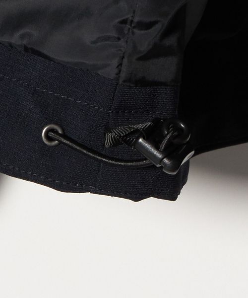 裾のドローストリング、袖口のスナップボタン付きベルトにより、フィット感の調整が可能。