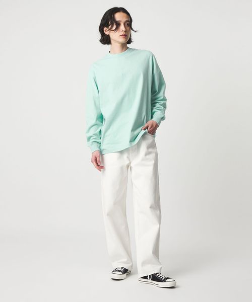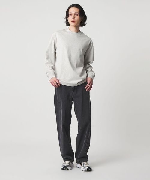 程よくゆとりのあるシルエットに加え、袖口をリブ仕様にし、またぎのステッチワークを施すことでカジュアル感を高めています。