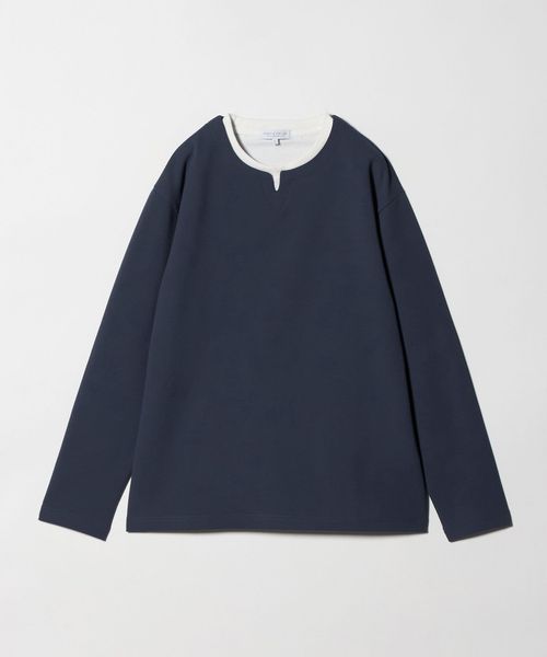 ネックに別布をあしらったフェイクレイヤード仕様のカットソー。