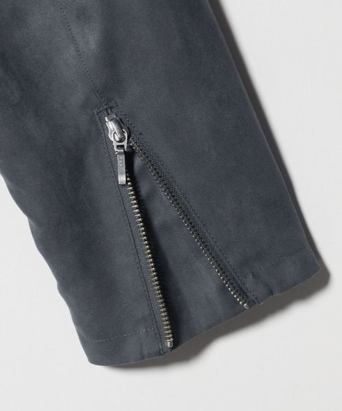 フロントジップや袖口のジップに施したメタルのアクセントがほどよいメリハリを与え、シックな中にもモダンな雰囲気をプラスしています。