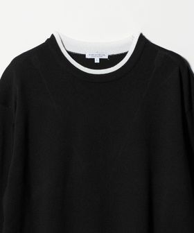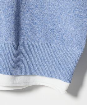 ネックと裾の配色がアクセントになった、レイヤード風デザインのニット。