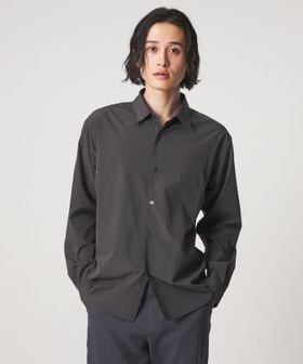 軽くさらっとした肌触りのポプリン調素材を使用した、レギュラーカラーの長袖シャツ。