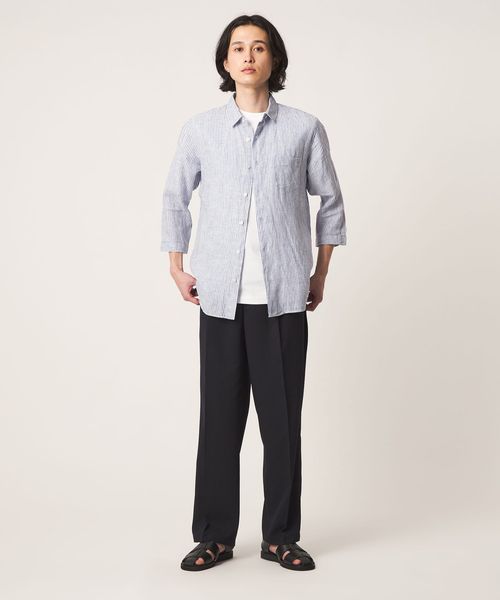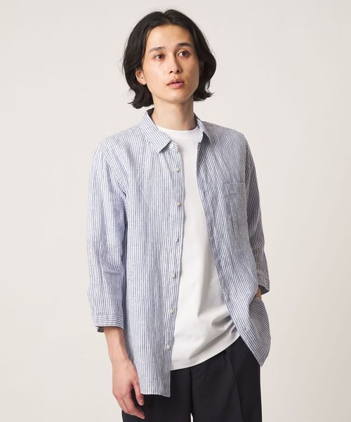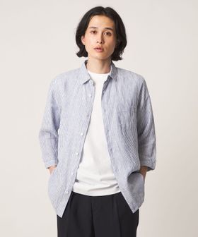 リネン シャンブレー ジャスト 7分袖 シャツ<A DAY IN THE LIFE>