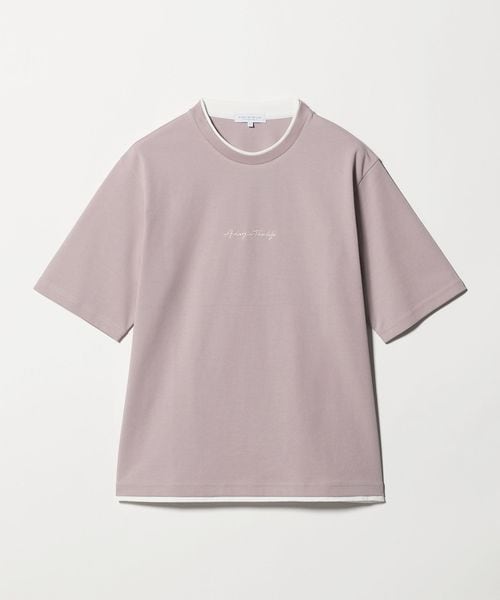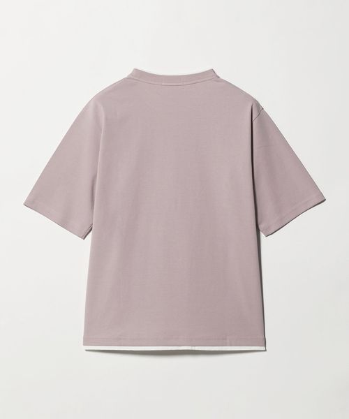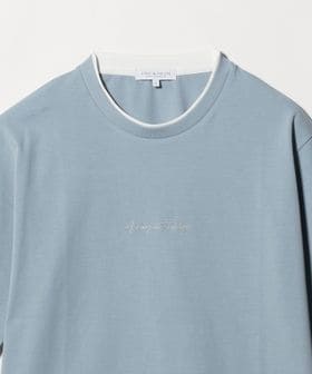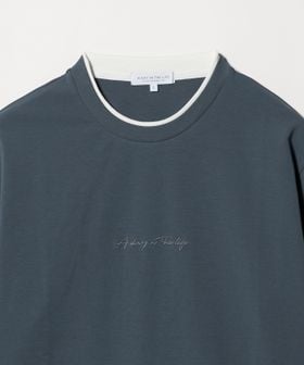 ネックと裾に別布をあしらったフェイクレイヤード仕様のクルーネックTシャツ。
