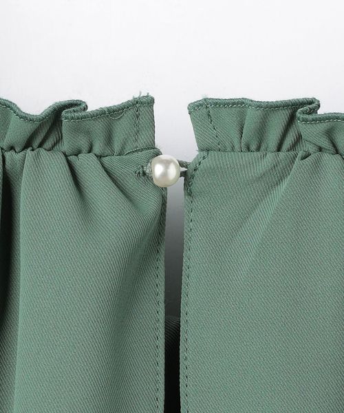 袖のタックやシャーリング、後ろのパール調ボタンなど細かなディティールがポイントです。