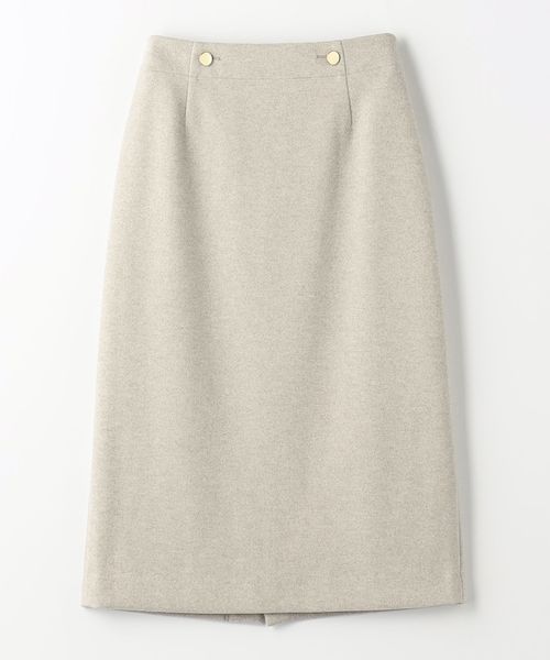 ウエストのボタンがポイントのタイトスカート。