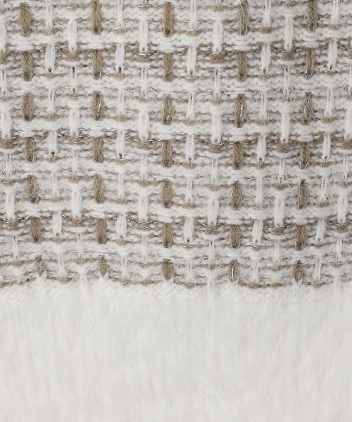 アクリル糸とフェザー糸をツイードのような編地にしています。