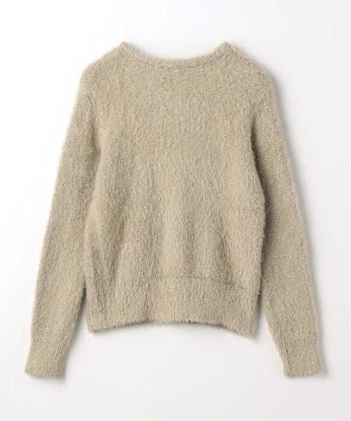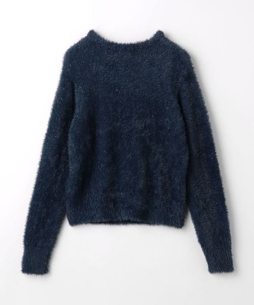 ふわふわのフェザーに細かなスパンコール入りの糸をミックスしたクルーネックニット。
